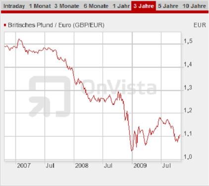 Anja Terchova Oktober 22, 2009 Das britische Pfund hat sich lange Zeit ja bei 1,45 (Korridor: 1,42 - 1,52) eingependelt, dan ist es ab Ende 2007 auf 1,28 (Korridor : 1,26 - 1,30) abgestürz und von da aus ging es nach einigen Monaten weiter auf einen Tiefstand von 1,04 und jetzt wieder aufwaerts auf 1,11. Wird das GBP jetzt mittelfristig eher seitwaerts (1,08 - 1,15) tendieren oder eher wieder aufwaerts (1,20 - 1,30) ? Diesen Beitrag teilen Link zum Beitrag