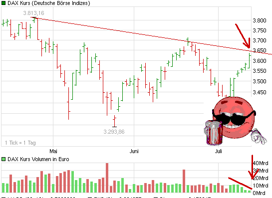 Emilian Juli 13, 2010 ...Die wichtigen Marken beim Dax Kurs liegen bei 3650Pkt.... Da is der DAX aber ordentlich mit Schmackes drüber! Diesen Beitrag teilen Link zum Beitrag