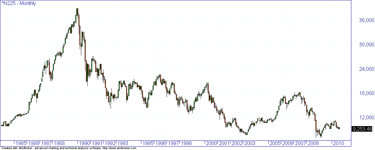 H.B. August 15, 2010 Ich bin zwar der Meinung, daß wir spätestens in 2 Jahren ein neues All-Time-High sehen werden, trotzdem kann es natürlich auch anders laufen. Hier z.B. eine Dow Jones Version für Stagnation. Das wären dann 20 Jahre volatile Seitwärtsbewegung in den 60er Jahren. Also... die 60er Jahre als Stagnation zu bezeichnen ist schon recht vermessen. In den 60er Jahren endete der Automations-Kontradjew, der S&P 500 stieg von 60 1960 auf 100 1969 und pendelte bis 1980 zwischen 60 und 100 hin und her. 1910 - 1945 war übrigens auch eine derartige Stagnations-Periode an den Finanzmärkten. Daraus folgt, dass es viel wahrscheinlicher ist, dass sich die Notierungen mittelfristig nicht von der Stelle bewegen, als dass sie, wie in den 80er Jahren, eine nachhaltige Wertsteigerung erfahren. Warum ihr den Dow und nicht den Nikkei als Referenz für die Prognose der langfristigen Trends heranzieht, kann ich nicht nachvollziehen. Schleißlich dürfte inzwischen auch dem Letzten klargeworden sein, dass die Industriestaaten nicht mehr die Lokomotiv-Funktion der globalen Ökonomieentwicklung innehaben. Und Japan zeigt einfach das Verhalten eines gefallenen Engels, Deshalb hier zur Auffrischung, was passieren dürfte: Ab 1992 unterscheidet sich der Chart nicht sehr vom Dow 1910-1945 (oder meinetwegen auch 1960-1980) Ohne Dividenden sind langfristige Prognosen nichts Wert, da sie der Zinseszinz Effekt verwässert wird. Eine Dividendenrendite von 2% kompensiert langfristig gerade die Inflation. Deshalb kann man überschlägig den Dow ganz gut zur Kapitalwertentwicklung heranziehen. Diesen Beitrag teilen Link zum Beitrag