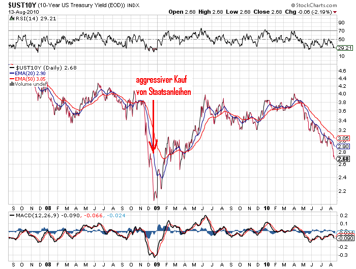 XYZ99 August 15, 2010 ... Meine Vermutung ist man wird die nächsten Monate aggressiv Staatsanleihen aufkaufen und dann wird es irgendwann ein Neues auf Staatsschulden finanziertes Konjunkturpaket geben. .... Vielleicht ist dies noch das Beste, was man noch versuchen kann: ein Arbeitsbeschaffungsprogram a la New Deal. Ein "trickle up"-Versuch sozusagen. Diskutieren schon manche. Diesen Beitrag teilen Link zum Beitrag