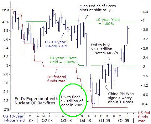 XYZ99 August 15, 2010 ... Finde der Artikel beschreibt es ganz gut. Treasury yields have risen because the economy has stepped away from the precipice of a Depression and because of rising debt issuance by the government to finance stimuli -- not just because the Fed wasn't buying enough. http://www.marketwatch.com/story/fed-ends-treasury-buying-now-what-2009-10-29 .... Hmmm. Da geht es aber doch nur um das Steigen der UST-Renditen, vermutlich, so der Artikel, weil eine wirtschaftliche Erholung erwartet worden ist (vor fast einem Jahr....). Da geht es nur ganz nebenbei um QE (daß die steigenden Renditen kein Zeichen für ein Scheitern von QE seien) und weiterhin nicht darum, wie Aktienkurse etwa dadurch beeinflußt werden. Diese Zusammenhänge wurden von pc ganz nett geschildert: QUANTITATIVE EASING: THE GREATEST MONETARY NON-EVENT Koo goes a step further in describing the failure of QE to promote private sector recovery. His simple example is one I have used often: The central banks implementation of QE at a time of zero interest rates was similar to a shopkeeper who, unable to sell more than 100 apples a day at $100 each, tries stocking the shelves with 1,000 apples, and when that has no effect, adds another 1,000. As long as the price remains the same, there is no reason consumer behavior should changesales will remain stuck at about 100 even if the shopkeeper puts 3,000 apples on display. This is essentially the story of QE, which not only failed to bring about economic recovery, but also failed to stop asset prices from falling well into 2003. Dieses ist sehr ironisch und sehr schön gedacht: What is equally interesting (in addition to the fact that QE is not economically stimulative) with regards to this whole debate is that this policy response in time of a balance sheet recession is not actually inflationary at all. With the government merely swapping assets they are not actually printing any new money. In fact, the government is now essentially stealing interest bearing assets from the private sector and replacing them with deposits. This might have made some sense when the credit markets were frozen and bank balance sheets were thought to be largely insolvent, but now that the banks are flush with excess reserves this policy response would in fact be deflationary - not inflationary. Why would we remove interest bearing assets from the private sector and replace them with deposits when history clearly shows that this will not stimulate borrowing? All of this misconception has the market in a frenzy. Portfolio managers and day traders cant wait to snatch up stocks on every dip in anticipation of what they believe is an equivalent to the March 9th 2009 low that was cemented by government intervention. As I have long predicted Ben & Co. have failed. If there is one thing that we know for certain over the last 24 months it is that Mr. Bernankes monetary policy has done very little to get the private sector back on its feet. This man failed to predict the crisis (was in fact oblivious to its potential), initiated the wrong trickle down policy response and yet now we turn to him to save us from a double dip and his Committee responds with more discussion of QE? Will we ever learn? Diesen Beitrag teilen Link zum Beitrag