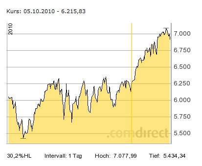 Archimedes Dezember 12, 2012 Auch in den letzten Monaten konnten die schlechten Nachrichten dem Kurs wenig anhaben. Ich führe den leichten Abwärtstrend und die darauf folgende Korrektur unter 7000 auf die Nähe der U.S. Indizes zum All-Time-High zurück. Nachdem die berühmten zitrigen Hände sich von ihren Aktien getrennt hatten, ging es fix nach oben. Das Zinsniveau der AAA-Anleihen spricht gegen eine baldige Trendumkehr. Es bleibt jedoch abzuwarten, ob es, wie in den letzten Jahren, eine Frühjahreskorrektur geben wird. Aus der Vergangenheit geurteilt, muss es erst noch zu einer längeren Aktien-Ralley mit einem Rückgang der Bondpreise kommen, bevor es wieder abwärts geht. Diesen Beitrag teilen Link zum Beitrag