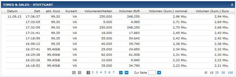 ceekay74 September 11, 2013 · bearbeitet September 11, 2013 von ceekay74 (...) , der Kurs ist so wie ich es sehe ein Taxkurs ohne Volumen- was bedeutet denn das?[/Quote] Wer hat an der Uhr gedreht? Mit dem Handel ist Schluss für heut... Wer kann denn schon verkaufen, wenn er noch gar nicht gezeichnet hat, oder ist das eine reine Schätzung eines Kursmaklers? Zeichnung ist beendet, die Anleihe weist doch einige Umsätze in STU auf und hat es auf Platz 2 der heutigen Umsatzspitzenreiter geschafft. Diesen Beitrag teilen Link zum Beitrag