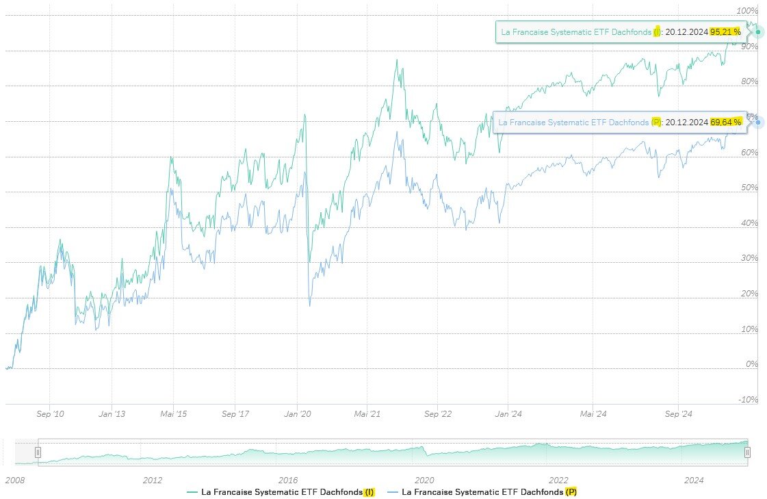 Geldhaber 2. Januar @selvitaWiederum vielen Dank für das jährliche Update! Ich hatte mich schon darauf gefreut. Der ETF-Dachfonds hatte auch 2024 wieder ein gutes Jahr, aber liegt doch deutlich hinter den anderen beiden Fonds. Immerhin wurde er noch nicht geschlossen oder steuerschädlich mit einem anderen Fonds verschmolzen. vor 3 Stunden von selvita: Systematic ETF-DACHFONDS..(A0MKQL) Hast Du eigentlich tatsächlich die Anteilklasse I (A0MKQL) für institutionelle Anleger im Depot? Ich habe die teurere Anteilklasse P (556167) für Privatanleger. Diesen Beitrag teilen Link zum Beitrag