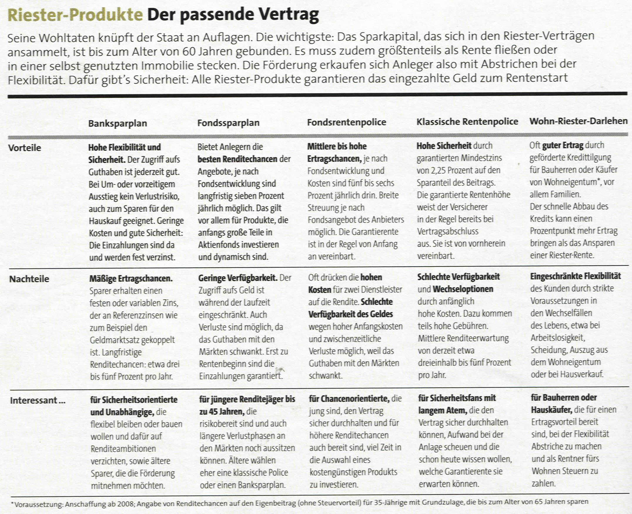 D-Mark Dezember 7, 2009 Hallo, das ist aus Capital 12/09: Über Kategorisierungen kann man immer trefflich streiten. Ich persönlich halte die Kritik wegen der -Verfügbarkeit- für überzogen. Schließlich reden wir hier über die Altersvorsorge - oder einen Baustein davon. Man muß also nicht so tun, als ob man diese Geld als allernächstes zum Zocken bräuchte...Gerade für risikobereite Anleger kann Riester eine ´secured_area´ darstellen. Wer den ganzen Artikel lesen will, sollte das Heft erwerben. Tip: Es gibt einen Typ von Verbraucher, der eine Zeitung nur liest, um sie anschließend bei Ebay zu verhökern... Diesen Beitrag teilen Link zum Beitrag