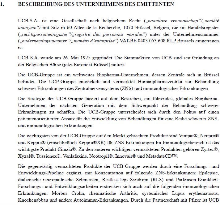 John Silver Dezember 17, 2009 · bearbeitet Dezember 19, 2009 von John Silver I... Rating? Gibt wohl keins, das Unternehmen ist wohl schon junk-verdächtig. Vielleicht können wir hier noch was über diesen Laden zusammentragen. ... Stammdaten Restlaufzeit ca. 7 Jahre Fälligkeit 10.12.2016 Ausgabedatum 10.12.2009 Nominalzinssatz 5,750% Stückelung € 1.000 Anleihevolumen Mio. 300 bis 500 Mio. € Zinszahlung jährlich Zinstermin 10.12. eines Jahres (erster Termin 10.12.2010) Zinssatz fix Nachrangig Nein Währung EURO ISIN BE6000480606 WKN A1AQ00 Step up des Zinssatzes möglich, siehe Prospekt (kann einer das prüfen, wann das gilt? würde ich hier dann nachträglich einfügen). comdirect: http://isht.comdirect.de/html/detail/main.html?sSym=BE6000480606.STU&reason=alphaWkn&more=A1AQ00&ad=&koop=&bRedirected=1&sTerm=A1AQ00 Verkaufsprospekt Siehe Post #01 von XYZ99 (Dank an Dich!) Der deutsche Auszug ist nur 9 Seiten lang: http://www.ucb.com/_up/ucb_com_investors/documents/Prospectus_summary_German.pdf Artikel etc. siehe Posting #02 von Webber [bLINKS[/b] Link zum Unternehmen: http://www.ucb.de/home ...und zur IR: http://www.ucb.com/investors.asp Wenn ich mich richtig erinnere stand in der Printausgabe der FAZ vom letzten Donnerstag etwas über die Anleihe (Rubrik Anleihen, erste Seite im Buch Finanzen). War ein für mich überraschend großer Laden, kannte die bisher garnicht. Stand auch irgendwas von "kein Rating" wenn ich mich richtig erinnere. Den Artikel suche ich jetzt aber nicht aus dem Altpapier heraus... Da zitiere ich lieber aus dem Anleihen-Prospekt : Diesen Beitrag teilen Link zum Beitrag