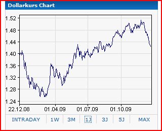 DON Dezember 23, 2009 Hinter meiner Frage stand der CHart auf Jahressicht, daher der doch starke Abwärtstrend seit 3.12. Siehe Graphik... Bin beeindruckt, wenn Griechenland einen so starken Einfluß auf den Dollar ausübt... Fallen euch ncoh andere Einflüsse ein? EDIT: WOW, das kleine Bild ist ja nahezu explodiert !! Der Chart zeigt den EUR Preis in USD. Dieser fällt, wie du scharf beobachtet hast, seit dem 3.12., d.h. man muss weniger Dollar zahlen um einen Euro zu erhalten, also steigt der USD gegenüber dem EUR und fällt nicht. Diesen Beitrag teilen Link zum Beitrag