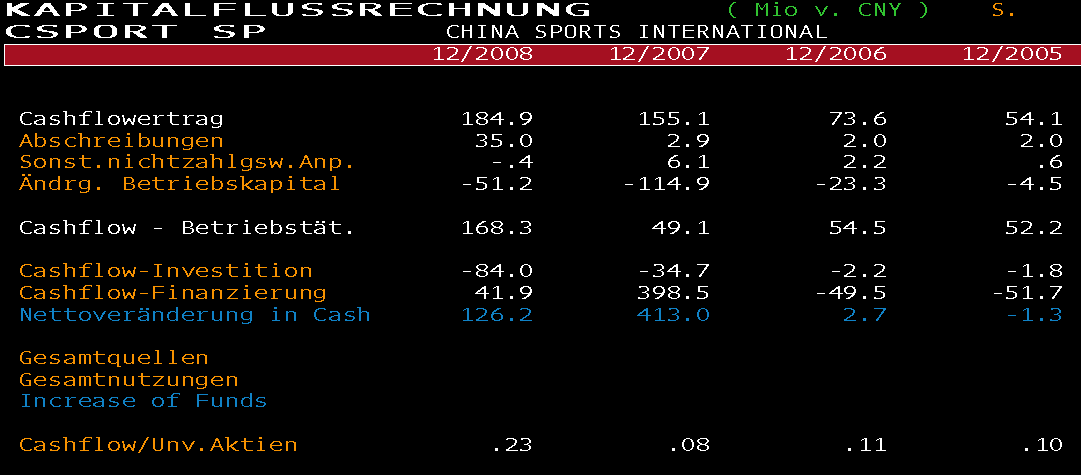 Anbei der Kapitalfluss seit 2005. Der hohe Lagerumschlag liegt daran, dass CSP nicht selbst die Produkte verkauft. Vermutlich werden diese direkt von den Distributoren am Lager abgenommen. Früher hat man für die großen Hersteller produziert, jetzt unter einem eigenen Brand.