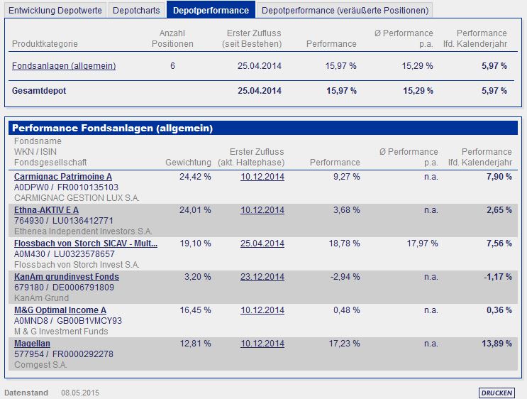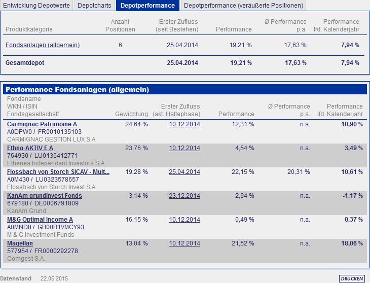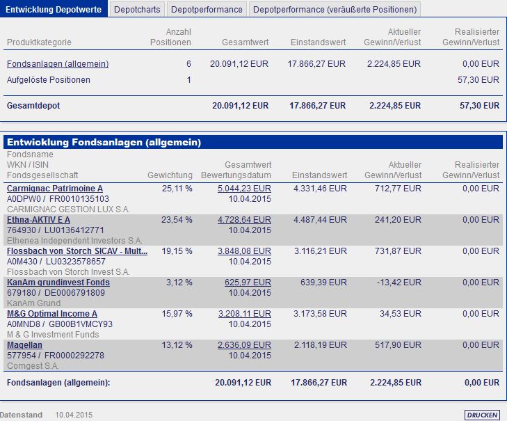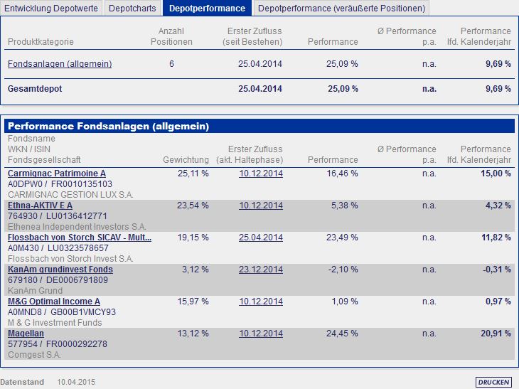 Aber auch der Fonds wird noch in das Depot 2 verschoben, vermutlich im Sommer. Da er gut läuft, lasse ich die Gewinne weiter laufen und verkaufe ihn vorerst nicht.