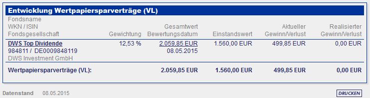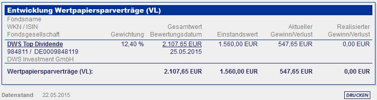 Da ich im Juni für eine Anschlussfinanzierung noch ein bissel Geld benötige, habe ich erst mal den einen Fonds verkauft, da er auch in den letzten Monaten ehr geschwächelt hat und so viel Geld lag da auch nicht drin.