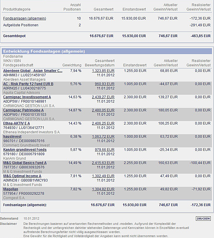2012 ist recht gut gestartet und die Fonds haben die Verluste wieder kompensiert und das Depot steht mit einem kleinen Plus da.