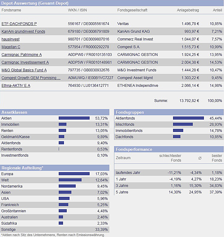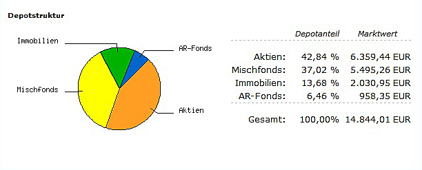 eine kleine Änderung habe ich vorgenommen, den Immo Fonds HI habe ich erst mal gegen einen Geldmarkfonds getauscht.