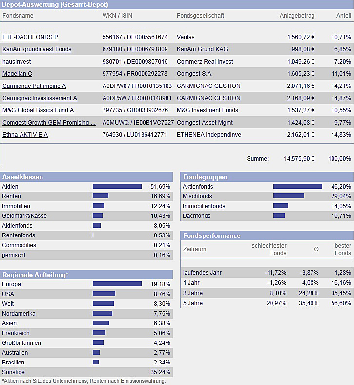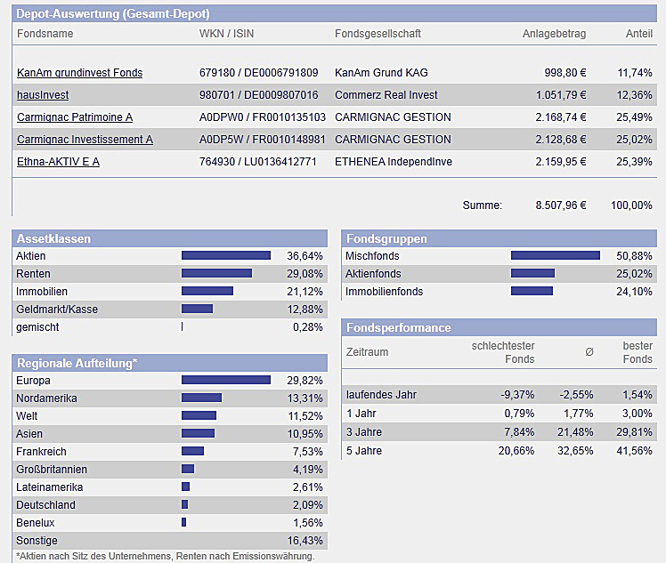 Die Fonds haben sich ein wenig erholt und das Depot ist nur noch knapp im Minus.