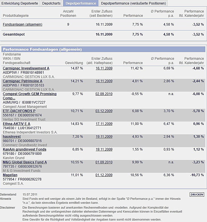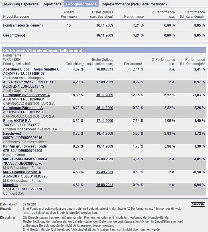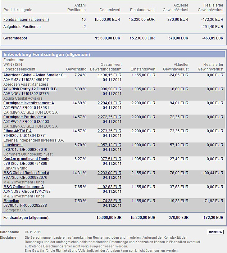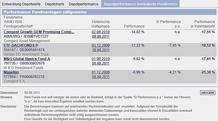 M&G Global Basics Fund A 797735 / GB0030932676 M & G Investment Funds 1.433,45 EUR 05.08.2011 1.480,00 EUR -46,55 EUR.