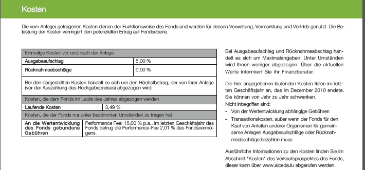 Und zu den Gebühren, glaube ich nicht dass, was im Internet auf Anfrage zu einer WKN/ISIN rausgespuckt wird. Daher lese ich die KID (Stand 31.07.2011):