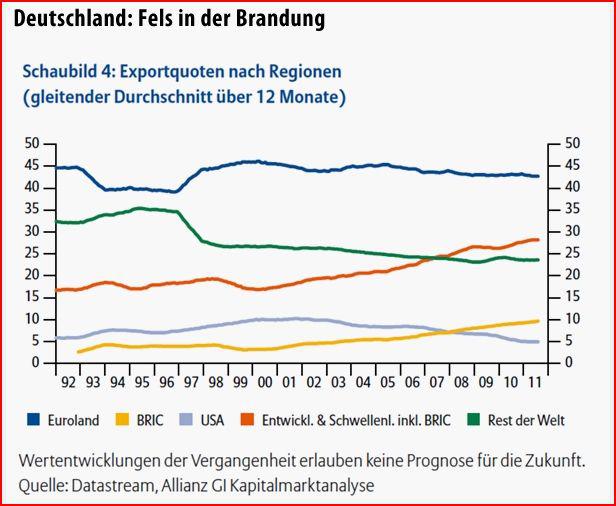 juro Februar 10, 2012 · bearbeitet Februar 10, 2012 von juro Wenn ich langfristig ein Weltportfolio aus ETF aufstellen wollte würde ich wohl eine Kombination aus MDAX u. SDAX nehmen u. nicht ein BIP-Portfolio. Den DAX würde ich aussen vor lassen. Und würde damit wohl als total durchgeknallt hingestellt werden. Ein BIP-Portfolio ist m.E. nicht zielführend, weil die Börsennotierung bzw. Stammsitz eines Unternehmens rein zufällig sind ohne jeglichen Bezug zu den Absatzmärkten bzw. Bezugsmärkten. Was hat eine BHP Billiton mit Grossbritannien zu tun - rein gar nichts. Eine adidas mit Deutschland, etc. Die Liste lässt sich endlos fortführen. Beim DAX zum Beispiel werden ca. 70% der Umsätze im Ausland gemacht. Beim MDAX werden ebenfalls 70% der Umsätze im Ausland gemacht, beim SDAX 50%. 30% der deutschen Exporte gehen in die Emerging Markets, Tendenz steigend. D.h. mit deutschen Unternehmen hat man im Mix bereits 30% EM-Anteil enthalten, Tendenz steigend bei entspr. Wachstum. Zusätzlich Rechtssicherheit, was man bei vielen EM-Staaten nicht behaupten kann. Bei meinen Aktien-Portfolio beträgt der Exportanteil derzeit 65%. Bei ca. 90% "deutschen" Unternehmen. Wobei ich nicht explizit bzw. ausschliesslich auf deutsche Unternehmen mit deutschen Geschäftsberichten fokussiert bin. Kann diese aber wesentlich besser einschätzen. Insbesondere im Nebenwerte-Bereich. Von demher favorisiere ich idR. schon deutsche Werte im Nebenwertebereich. Die Rahmenbedingungen für deutsche Unternehmen sind jedenfalls m.E. einer der besten weltweit (Rechtssicherheit, Innovation, Wirtschaftlichkeit, Qualität, etc.): Letztendlich holt man sich idR. automatisch ein Weltportfolio mit "deutschen" Unternehmen ins Portfolio. Egal ob grosse oder kleinere Unternehmen. Zumindest im Mix. Nix mit home bias. Und die Qualität u. die Rahmenbedingungen sind m.E. ziemlich überdurchschnittlich im globalen Vergleich. Aber das ist nur meine persönliche Meinung. Auch ist die Branchenallokation (MDAX + SDAX) mit einem nur ziemlich geringen Banken- u. Finanzanteil besser gewichtet als mit einem BIP-Portfolio. Dies ist nur meine persönliche subjektive Meinung u. kann auch anders gesehen werden. Diesen Beitrag teilen Link zum Beitrag
