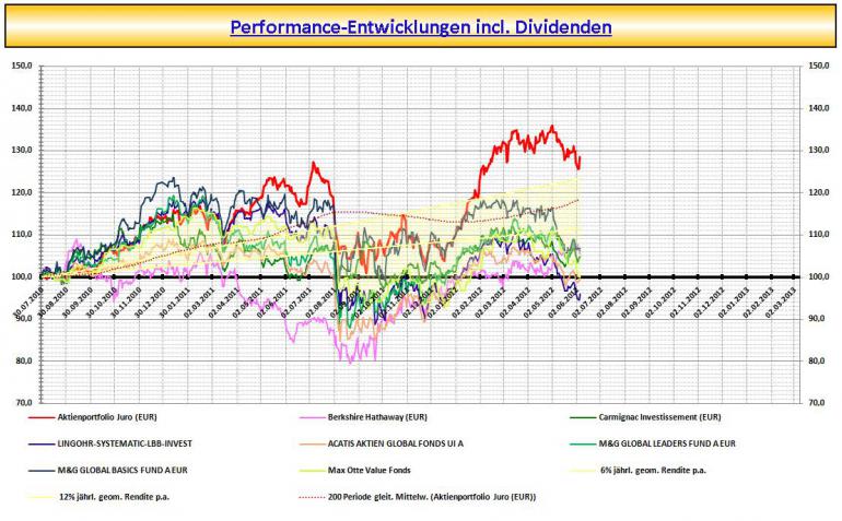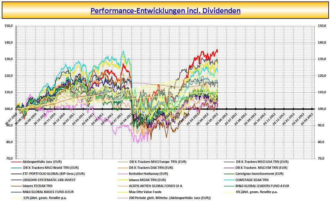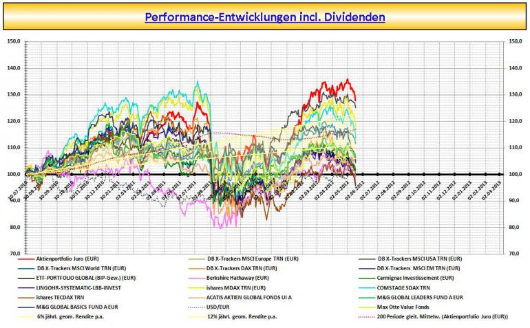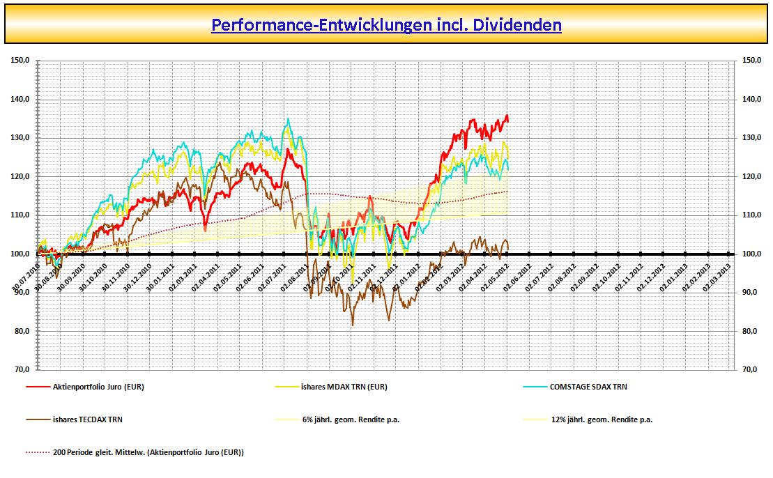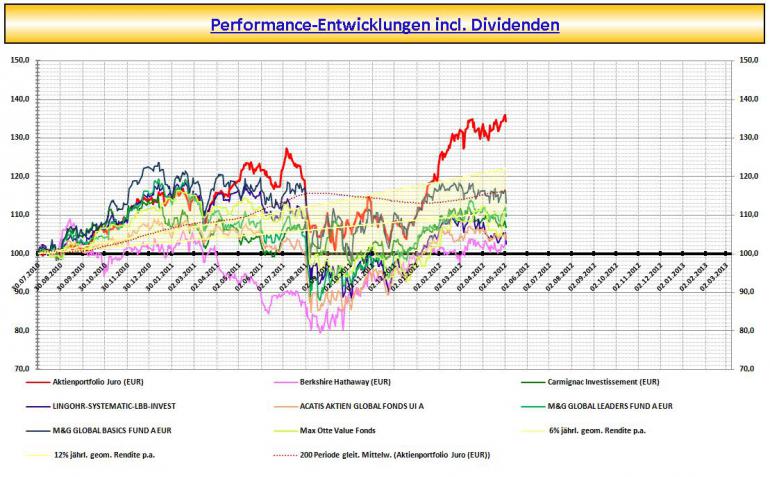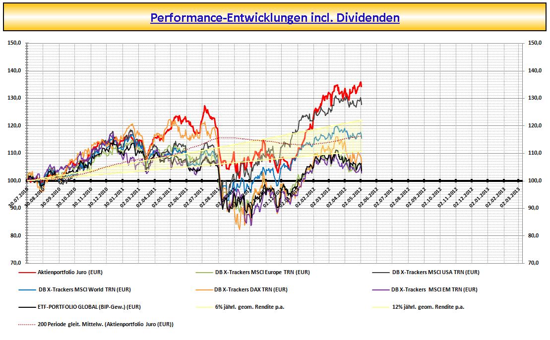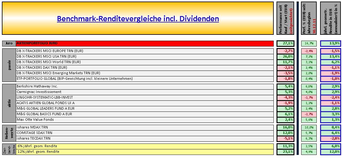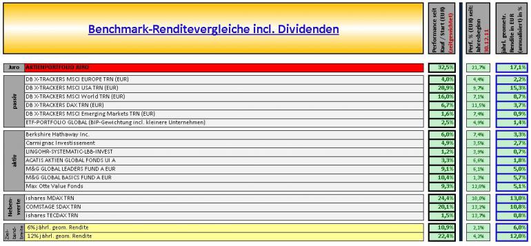 Markettiming in Form von Cash-Beständen möchte ich aussen vor lassen u. wäre gemessen an den Aktien-Benchmarks ein Vergleich Äpfel mit Birnen. Es steht die Aktien-Performance im Vordergrund.