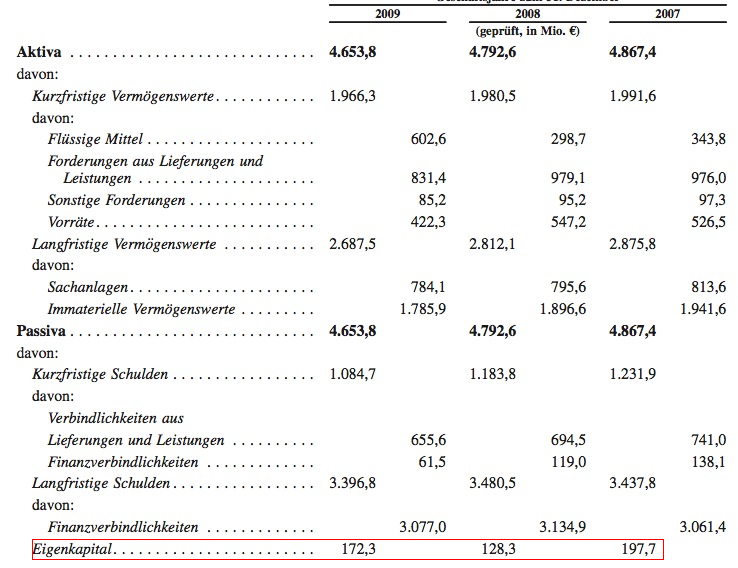 Chris89 März 27, 2010 · bearbeitet März 27, 2010 von Chris89 ...Find es halt einfach unendlich dreist wie die leute hier übers ohr gehauen werden .... Die Bilanzen sind doch öffentlich zugänglich... :- ... hehe schade nur das wahrscheinlich der großteil der aktionäre keine bilanzen lesen kann... Wozu auch. Als Fondsmanager gilt: Hauptsache an den Index gehalten! Die Gretchenfrage ist doch: Wer kauft diesen Müll? Meine Idee: Die sollen die als Namensaktien emittieren und ich darf ins Aktienregister schauen ;-) Ps.: Ich stelle mir gerade vor wie die Bilanz in HGB aussehen würde. Schließlich liegen da noch knapp 1700Mio. Euro immaterielle Vermögenswerte (bei ca. 180Mio € Eigenkapital). Diesen Beitrag teilen Link zum Beitrag