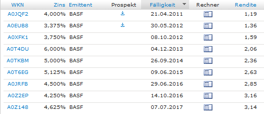 Fleisch Januar 10, 2011 das mit der Information haben glaube alle deutschen Banken so gehalten. Musst mal in die Emissionsbedingungen schauen wo Cognis verpflichtet ist das zu veröffentlichen. Durch Kontakt mit der IR-Abteilung von BASF kann ich aber sagen, dass der 9.5% Bond (ISIN XS0300167938 / WKN A0N30Y)) wird am 10.01.2011 gemäß Dokumentation zurückgezahlt. Ich gehe davon aus, dass das wieder mit eifrigem Rein-Raus-Rein-Buchen der Banken verbunden ist und du die Zahlung in den nächsten Tagen am Konto haben solltest. Diesen Beitrag teilen Link zum Beitrag