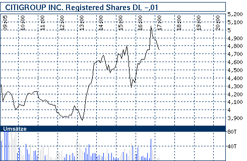 Risiko November 24, 2008 War doch erlaubt und bestimmt mit ein Grund warum der Kurs letzte Woche so rapide geunken ist. Wegen neuem Rettungpaket vorbörslich + 26 % Das ist heute ein idealer Einstiegszeitpunkt bei der Citigroup. So übernimmt der Staat Bürgschaften für bis zu 306 Mrd USD an riskanten, hypothekenbesicherten Krediten, die im Zentrum der Finanzkrise stehen. Citigroup muss lediglich die Anfangsverluste bis zu einem Volumen von 29 Mrd USD tragen, die restlichen Ausfälle übernehmen die staatlichen Stellen. Zudem wird das Finanzministerium der Citigroup 20 Mrd USD Liquidität bereitstellen. Citigroup in Frankfurt 24.11. 09:17 4,21 1.25 +42.23% Diesen Beitrag teilen Link zum Beitrag