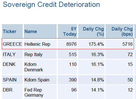 Zur Auflockerung hier die Reaktion der CDS-Märkte auf die neueren Ereignisse: