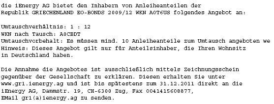 Edit: @akaman, wenn die Griechen bei 6-7% stehen dann kann man sich einen Einstieg bzw. Aufstockung fast wieder überlegen. Für iEnergy wäre bei dem Deal ne nette Arbitrage drin. (ich hoffe sehr, dass sich kein dummer findet).
