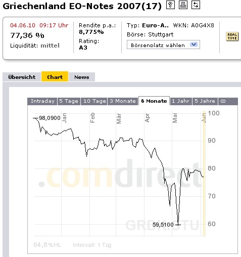 Die Rendite von griechischen Anleihen liegt ja derzeit bei knapp 9 %.