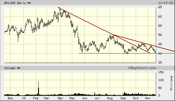 Es sieht so aus, als ob bei 40 HKD die endgültige Bodenbildung