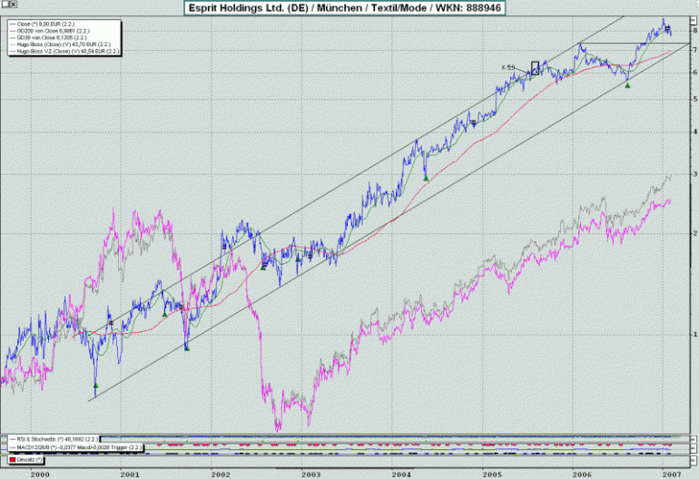 Selbst in den schwierigeren Jahren 2001 bis 2002 hat Esprit gut performt wie man sieht.