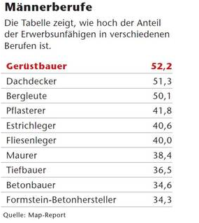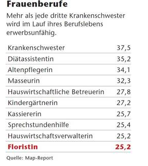 Ende vergangenen Jahres bezogen in Deutschland rund 1,63 Millionen Menschen zwischen 16 und 64 Jahren eine Erwerbsminderungsrente, davon 180.000 seit 2011. Das Durchschnittsalter der Neuzugänge war bei Frauen mit 49,9 Jahren um mehr als ein Jahr niedriger als bei Männern mit 51,1 Jahren. Weitaus häufigste Hauptdiagnose für die Erwerbsminderung sind mit 41 Prozent psychische und Verhaltensstörungen.