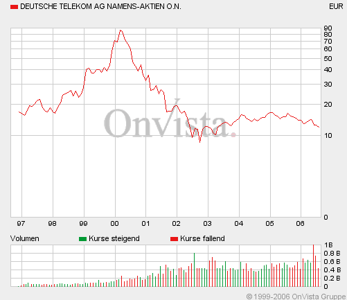 Larry.Livingston August 23, 2006 und bei der Dt. Telekom lohnt es sich nun mal nicht jetzt auf der Stelle auszusteigen Hmm, definier das mal genauer. Zu hohe Gebühren im Vergleich zum Wert? Schau dir doch einfach mal an wie sich Telefonica oder meinetwegen Telenor in den letzten Jahren entwickelt haben und wirf dann nochmal einen Blick auf die Telekom... Diesen Beitrag teilen Link zum Beitrag