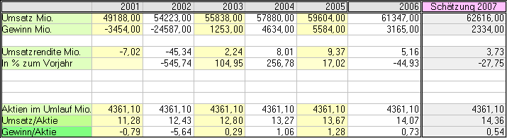 teffi Oktober 27, 2007 Tja, ich bin raus bei der Telekom und lese hier nur noch zur Weiterbildung in Sachen Berichte auswerten mit. Hatte am Donnerstag eigentlich eh schon entschieden, dass die Telekom nicht mehr viel Potential nach oben bietet. Abends in den Nachrichten habe ich dann was von +4% gelesen, die ich auf die Zahlen von France(?) Telekom zurückgeführt hab. Dann hab ich nach weiteren +2% am Freitag den Krempel verkauft, bevor die Leute merken, dass die Deutsche Telekom nicht France Telekom ist. Dann hab ich mal nachgesehen, warum ich die eigentlich gekauft hatte: damals hab ich sie für Wahnsinnig unterbewertet gehalten, aber auch nur aufgrund der Kennzahlen bei boerse-frankfurt.de. Dachte jedenfalls, dass es nicht weiter bergab gehen kann. War vielleicht gar nicht so falsch: das war vor einem guten Jahr bei 11,- waynehynes: ich hab weiter oben mal gezeigt, wie ich auf mein KBV gekommen bin, das wesentlich niedriger war als Deines. Würd mich freuen, wenn Du mal kurz draufgucken könntest, was ich zu viel berechnet hab. Aber nur, wenns nicht zu viel Umstände macht. Diesen Beitrag teilen Link zum Beitrag