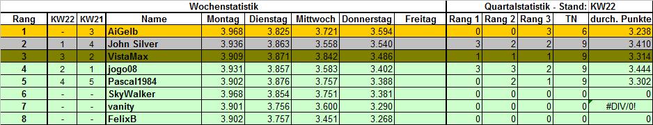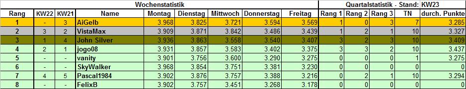 John Silver Juni 11, 2010 · bearbeitet Juni 11, 2010 von John Silver Dein erster Sieg in diesem Quartal. Umso schöner das es in dieser Woche mit 8 (!) Teilnehmern geklappt hat! Herzlichen Glückwunsch! Diesen Beitrag teilen Link zum Beitrag