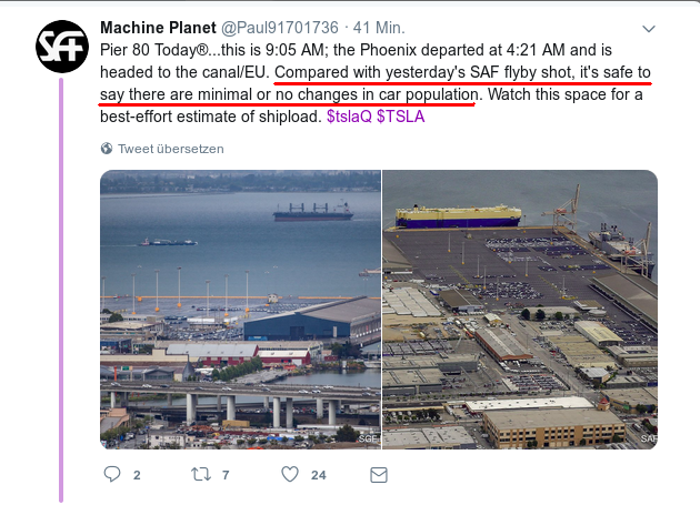 Holgerli Mai 15, 2019 vor einer Stunde von magicw: wow - jede Wette, die Lemminge feiern das Schiff und erwarten 1000e Teslas darin. Machts nichts. Die COSCO Tengfei legt in 7,5 Stunden an Pier 80 an. Diesen Beitrag teilen Link zum Beitrag