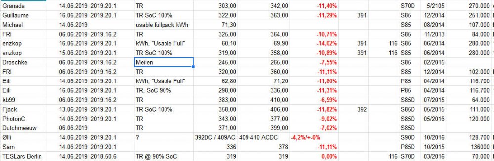 Holgerli Juni 17, 2019 vor 8 Stunden von Michalski: Akku-Kapazität (Nominal Full Pack) gesunken nach FW-Update https://tff-forum.de/viewtopic.php?f=57&t=28698 S85D sudden degradation https://teslamotorsclub.com/tmc/threads/s85d-sudden-degradation.154976/ Die berichteten Werte sind eine Katastrophe für das Image der lang haltenden Batterie. Sollte die nicht Hunderttausende oder sogar eine Million Kilometer halten? Die Tabelle hier spricht Bände: https://docs.google.com/spreadsheets/d/1B80jVdL-LqF-4ObuLVsZO8SW1MFnMW_R1Hgz00CBvIA Es sind nicht nur die Kapazitätsverluste im zweistelligen Prozentbereich, sonder auch die drastisch verringerten Ladeströme, was Berichten zufolge die Ladezeit um 50% erhöht und damit die Langstreckentauglichkeit weiter beeinträchtigt. Manchmal bekomme ich ja durch Zitate mit wenn Michalski zur "Hochform" aufläuft: Besagter Screenshot von Guillaume aus Deutschland. Unten haben wir die Zeile Odometer. Das bdeutet Kilometerzähler. Der steht bei Trayloader nun bei 251.400. Innerhalb von 100.000km ist nun die Reichweite von ca. 380 auf 335km gesunken. Macht 12,2% (er selber errechnet 11,3%) auf 100.000km. Der wichtigere Teil: Zitat We are seeing the same behaviour here in Germany. Only the pre-FL (old chemistry) seem affected. cell volatge seems to be limited to 4.11V from before 4.2, and the cruves all look similar like this one. Und schaut man dann mal auf ein Fahrzeug mit geringerer Laufleistung: Alles ok. Weil mit Google Docs ja viel möglich ist: Also: wir fassen zusammen: - Es sind nur wenige Fahrzeuge betroffen - Es sind scheinbar ausschließlich Model S mit 85er Akku betroffen - Fast 30% der Fahrzeuge haben Laufleistungen über 250.000km (wer hat das mit seinem Verbrenner hinbekommen?) Was höchstwahrscheinlich passieren wird: - Da es eine Software-Limitation ist wird Tesla (etwas) zurückrudern und alles bleibt beim alten bzw. wird deutlich abgeschwächt Diesen Beitrag teilen Link zum Beitrag