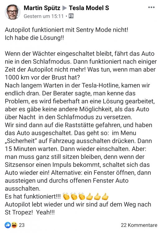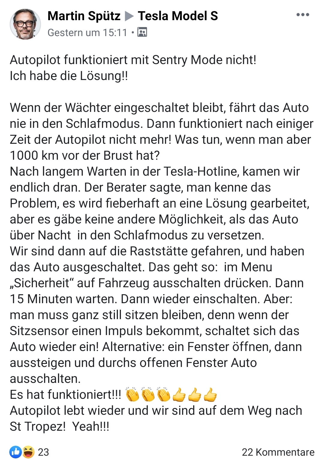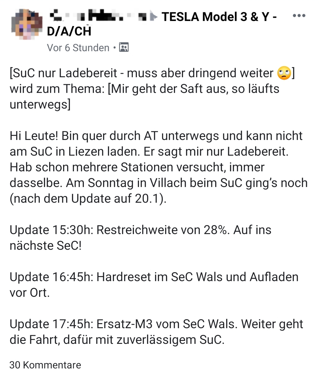 Michalski Juni 19, 2019 · bearbeitet Juni 19, 2019 von Michalski Die Leidensfähigkeit von Tesla-Eigentümern ist faszinierend. Post Purchase Rationalization par exzellent. Ist übrigens ein wiederkehrendes Thema, das das Model 3 einfach an Supercharger das Laden verweigert. Servicecenter hat erst wieder im August (!!) einen Termin frei: Laden am SuC nicht möglich! Software Diesen Beitrag teilen Link zum Beitrag