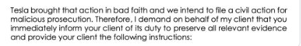 Die Beweissicherung ist jedenfalls bei Teslas Anwälten schon angemeldet