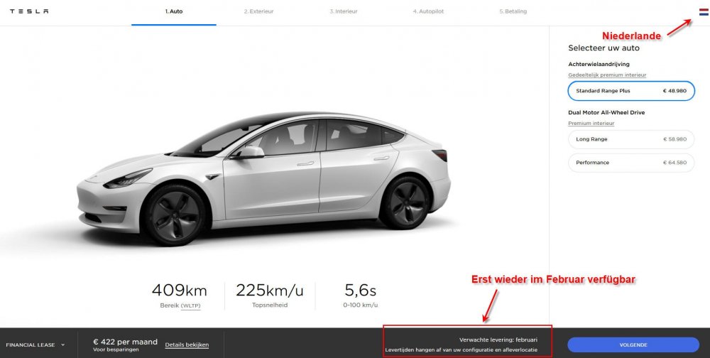 krett Januar 5, 2020 Seit dem 01.01.2020 gibt es ja in Deutschland bessere Subventionen für eAutos unter 40.000€. Zum einen gibt es 6000€ Förderung (eigentlich 3000€), zum anderen gibt es bei Dienstwagen nur noch lächerliche 0,25% Versteuerung. Haltet ihr es für möglich das Tesla ein spezielles Model 3 für dt. Kunden rausbringt? Im Prinzip ein Model 3 SR+, das aber Softwareseitig die Reichweite beschnitten bekommt. Kostet dann genau 40.000€, man kann Subventionen abgreifen und bei Bedarf per kostenpflichtigen Update die Reichweite auf Normalniveau bringen. Diese Idee fliegt irgendwie in meinem Kopf rum... Diesen Beitrag teilen Link zum Beitrag