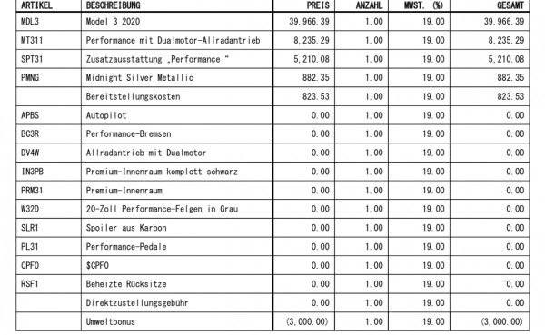 localhost Juni 5, 2020 WTF scheinbar versucht Tesla mal wieder mit einer Frechheit (Betrug) durchzukommen: Die Modelle "Long Range" und "Performance" werden auf der Rechnung als "Modell 3" ausgewiesen und dann als Optionen in der Rechnung aufgeschlagen, sodass die teuren Modelle unter die wichtige Grenze von 40k Nettolistenpreis rutschen und eine höhere Förderung abgegriffen werden kann. Das BAFA verschenkt hier Geld als wäre es ihr eigenes. Habe mich mal per Email darüber beschwert, würde mich freuen wenn es auch andere tun (elektromobilitaet@bafa.bund.de) Diesen Beitrag teilen Link zum Beitrag