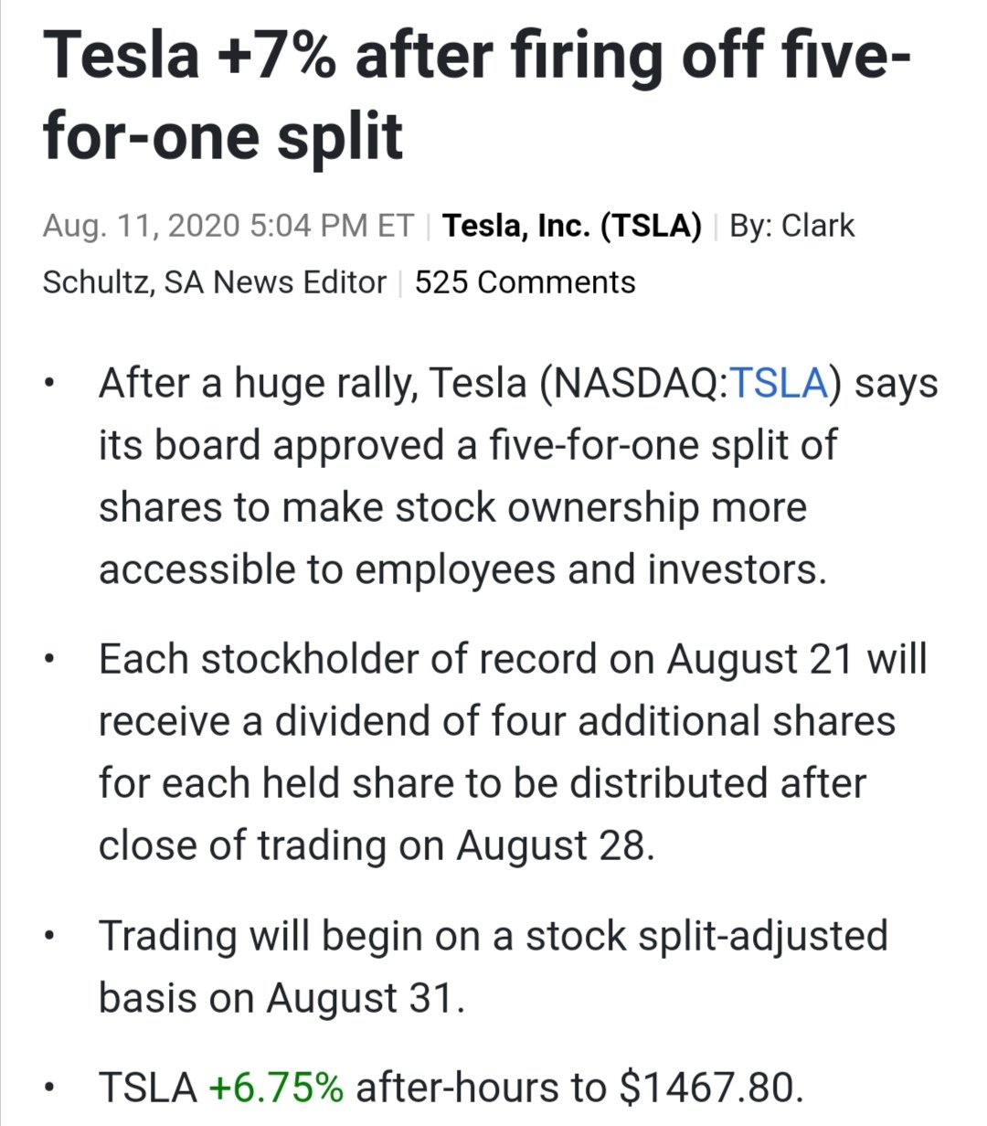Cai Shen August 13, 2020 vor 1 Stunde von pepr87: Oder wo habe ich hier den Denkfehler bei dem Prozess? Dass bereits vor dem 28.08. jeder weiß, wie sich die Anzahl an Aktien durch den Split verhalten wird und eine Aktie nach der Verfünffachung derer Anzahl eben KEINE 1.xxx USD mehr wert ist. Diesen Beitrag teilen Link zum Beitrag