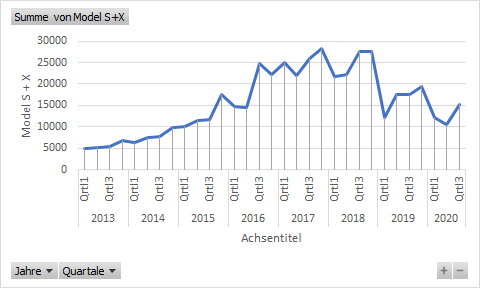 Michalski Oktober 7, 2020 · bearbeitet Oktober 7, 2020 von Michalski vor 2 Stunden von Holgerli: Das kann jeder lesen: Du möchtest die Frage nicht beantworten und stellst deswegen Teslas Zahlen ohne wirkliche Gegenbeweise in Frage. Ja, das habe ich gelesen und bin der Meinung, dass Du es Dir verdammt einfach machst. Ich habe Dir sogar ausgerechnet, warum ich glaube, dass Tesla keinen Gewinn machen wird und Du behauptest weiterhin, ich hätte die Frage nicht beantwortet? Im Gegenzug bist Du nicht in der Lage, eine einzige Frage selbst zu beantworten. Daher wäre ich vorsichtig, wem Du noch alles Fragen an den Kopf werfen willst. vor 2 Stunden von Holgerli: wohin die Autos gehen? Ganz einfach in den Markt der bei den BEVs stark wächst. Irgendwann ha um 2008 hat Tesla mit wenigen hundert Rodste angefangen die vom Markt aufgenommen wurden. Vom Model S und X werden nun jedes Jahr mehere zehntausend Autos verkauft. Vom M3 und MY werden es dieses Jahr wohl mehere hundertausend und dann 2020 deutlich übereine Millionen Autos. Ganz einfach. Das hier sind die Model S+X-Umsätze aus der Vergangenheit. Daswaren mal 100.000 Einheiten pro Jahr. Jetzt sind es deutlich weniger und weder ein Refresh, noch ein Nachfolgermodell ist in Sicht. Die >1 Mio im nächsten Jahr werden wohl eher weniger von den beiden Modellen kommen, denn die Produktionskapazität ist mittlerweile auf 90.000 Stück begrenzt und wird bei weitem nicht ausgenutzt: Model 3 ist ja etwas jünger und wird seit 2 Quartalen mit Model Y zusammengewürfelt (blau eingefärbt): Quelle der Daten: Tesla, Inc. - Wikipedia Siehst Du die Stagnation beim Model 3 seit Q2 2019? Siehst Du das Plateau bei Model S+X nach 4 Modelljahren Model S und den späteren Absturz? Wie begründest Du jetzt ein Wachstum im kommenden Jahr auf >1 Mio, wenn Tesla es im dritten Anlauf gerade erst einmal schaffen will, 500.000 Fahrzeuge in diesem Jahr überhaupt zu erreichen? Wenn sie weder die Produktionskapazität aktuell ausgelastet bekommen, noch das, was sie produzieren, auch komplett verkaufen können? Roadster, Cybertruck und Semi werden ja nicht zur Rettung kommen. Die wurden alle weiter nach hinten geschoben und erweisen sich weiterhin als Vaporware. Ich wünsche mir da wirklich mal eine fundierte, saubere Herleitung von Dir. Aber vermutlich warte ich darauf wieder vergebens. vor 1 Stunde von Holgerli: Nur um mal die beiden Zahlen, an denen das Scheitern von Tesla in China herbeigerdet wird bzw. werden soll, etwas in Relation zustellen: Jene 14.08 Milliarden bzw. 2,23 Milliarden sind Yen. Das sind Renminbi, keine Yen, nur mal so am Rande erwähnt. vor 1 Stunde von Holgerli: Um gerechnet sind die 14 Mrd Yen dann 2,075 Mrd USD. Ich denke, dass es kein Problem sein wird bei dem Ausbautempo der GF Shanghai diese 2,075 USD zu investieren. Zeig mir bitte einmal, wo die 2 Milliarden Dollar teuere Fabrik in Shanghai in Teslas Büchern zu finden sind. Den Jahresbericht und den letzten Quartalsbericht wirst Du sicher selbst finden oder brauchst Du noch einen Link? vor 1 Stunde von Holgerli: Die 2,23 Mrd Yen jährlich sind umgerechnet 339 Mio USD. Wo soll da das Problem sein. Schätzungsweise wird man Ende 2023 minimum 500.000 Fahrzeuge produzieren. Woher kommt diese Schätzung? vor 1 Stunde von Holgerli: Selbst wenn man Ende 2023 JEDES(!) Fahrzeug für nur noch umgerechnet 30.000 USD in China/Asien verkaufen wird macht man 15 Mrd. USD Umsatz. Das wären 2,25% von den 15 Mrd. Aktuell haben sie den Preis in China in kürzerer Zeit um 22% auf ~35k gesenkt. Der Preis wird noch tiefer fallen müssen, wenn sie mehr in China verkaufen wollen. Da sind 30k sehr optimistisch, genauso wie die Stückzahlen. Da sie schon jetzt auf den Export abzielen, denke ich, sie werden das Ziel nur erreichen, wenn sie den Bedarf außerhalb von China in Europa und Asien aus der Fabrik in Shanghai bedienen. Dann stellt sich aber die Frage, wozu die Fabrik in Europa gebaut wird? Die Zeit wird es zeigen. Diesen Beitrag teilen Link zum Beitrag