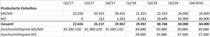 Dandy August 6, 2018 · bearbeitet August 6, 2018 von Dandy Falsche Aussage revidiert Am 5.8.2018 um 15:07 schrieb Holgerli: 1.) Verkäufe Bis Q2/18 sind das reale Werte Für Q3/18 habe ich das M3 die 55.000 Stück aus dem Letter angenommen, was ca. 4.250/Woche Produktion entspricht. Davon seien 10.000 Stück im Transit Für Q4/18 habe ich 6.000 Stück/Woche auf 12 Wochen angenommen von denen 12.000 im Transit sind Die Werte für das MS/MX orientieren sich an der Produktionsrate von 100.000 Stück/Jahr. Den Durchschnittspreis für das MS/MX habe ich anhand der Q2/17-Werte errechnet und hebe ihn zum Q1/18 auf 95.000 USD an, in der Annahme, dass jetzt nur noch Leute MS/MX wollen die auch ohne M3 eh gekauft hätten Die 59.000 Euro für's M3 Im Q1/18 errechnen sich aus der Differenzsumme. Für das Q2 habe ich habe ich einen niedrigeren Wert angenommen. Für das Q3 und Q4 einen höheren Wert aufgrund AWD- und Performance-Modell Der höhere ASP für M3 wie auch MS/MX halte ich für recht optimistisch, genauso wie die hohen Verkaufszahlen, aber grob dürften sie hinkommen, vorausgesetzt Tesla bekommt nicht wieder Probleme in der Produktion oder Kunden springen vermehrt ab, da nur die teuren Model 3 lieferbar sind. Zitat 2.) Brutto-Marge Hier habe ich die 27,9% aus Q2/17 für das MS/MX weitergeführt, weil dass das letzte Quartal ohne M3-Serienproduktion war und im Q3/17 das Alles-muss-raus-für-den-einmaligen-Gewinn-vor-den-großen-Verlusten-Quartal war. Gelb sind die von mir errechneten Werte. Schwachpunkt hier ist der Wert für das Q2. Tesla selber sagt, dass die Gross margin für das M3 "Slightly Positive" sei, ein Analyst sprach im ConferenceCall von 3%. Ich komme hier auf 12%. Für Q3 und Q4 habe ich für das M3 15% und 20% Marge (lt. Tesla) angenommen. Der CFO selbst sprach von "slightly positive gross margin" und Musk hat die vom Analysten angenommenen 3% direkt danach bestätigt. Wir Du daher auf 12% Marge kommst, ist mir ein Rätsel. Außerdem musst Du noch etwas beachten. Die Marge springt nicht von 3% auf 15% von einem Tag auf den anderen, sondern sie verbessert sich kontinuierlich zum Ende des Quartals. Da Musk von von einer 20% Marge für das Model 3 in Q4 geschrieben hat, die ich stark in Zweifel ziehe, da sie sehr nahe an der Marge von Model S/X liegt, kannst Du von einer durchschnittlichen Bruttomarge von um die 10% in Q3 ausgehen, die dann Richtung durchschnittlich 15% in Q4 wandern wird. In meiner vereinfachten Rechnung habe ich einfach die mehr produzierten M3 in Q3 als Umsatz hinzuaddiert und der Bruttomarge mit 15% aufgeschlagen. Im Endeffekt kommt das ziemlich aufs Gleiche raus, wie mit meinen Annahmen oben. Zitat 3.) Brutto-Gewinn Revenue ist Anzahl ausgelieferter Autos x Preis Cost of Revenue ist Revenue - Marge Leasing, Energy und Service and other habe ich ohne weitere Betrachtung 1 zu 1 durchlaufen lassen. Hier sollte allerdings bedachtet werden, dass Tesla anstrebt im 2. Hj. massiv im Bereich "Energy Storage" zu expandieren. Der Bereich hatte mit 12% eine positive Marge. Hier müsste man mal schauen. Da die Bruttomarge der anderen Sparten kaum ins Gewicht fällt, kann man sie der Einfachheit ohnehin vernachlässigen. Die von mir oben gemachten Aussagen zur Verbesserung der Margen gelten aber auch hier. Bei durchschnittlich 10% Marge für das Model 3 käme ich auf eine rund 260Mio höhere Bruttomarge in Q3. Ließe man den Rest gleich, dann käme man auf rund 880 Mio Rohgewinn in Q3, also hundert Mio unter Deinem Wert. Der Rest kommt Durch optimistischere Annahmen bei Model S/X (höher als in Q2) und zu hoch angesetzte Bruttomarge für den M3 von Dir. Zitat 4.) Endrechnung R & D habe ich weiterhin langsam waxhsen lassen Selling & Co etwas stärker Restructuring halte ich für eine einmalige Maßnahme. Jetzt sind die Wasserköpfe gefeuert. Die Kosten für den Vertrieb werden durch die enorm gestiegenen Stückzahlen des M3 deutlich stärker steigen als von Dir angenommen. Die Autos kommen schließlich nicht umsonst zum Kunden und die Verkäufe bekommen vermutlich auch Prämien etc. Ich würde 1,5 Mrd in Q3 annehmen. Damit komme ich mit den hundert Mio Unterschied oben auf -900Mio in Q3. Wir können uns auch auf die Mitte einigen, was im Bereich des abgelaufenen Quartals läge, rund -700Mio. Capex für Q3 und Q4 lässt Du mal elegant einfach weg. Musk hat zwar von deutlich reduziertem Capex gesprochen, aber sicher nicht von gar keinem. Dazu kommen fällige Rechnungen. Die Verbindlichkeiten von 3 Mrd müssen irgendwann bezahlt werden. Die Forderungen gegenüber sind ein Bruchteil und die neuen Teile für die hohen Stückzahlen gibt es sicher nicht gratis oder weiter auf Pump. Wo kommt das Geld bei Dir dafür her? Weißt Du jetzt, warum Musk mit seinen Lieferanten gesprochen hat? Nehmen wir die -700 Mio Net loss als Grundlage und nehmen mal großzügig an, dass die Investitionen in der Höhe der Abschreibungen (die langsam ansteigen) liegen - was das absolute Minimum darstellen dürfte, das Tesla braucht um flüssig für das operative Geschäft zu bleiben. Im operativen Cashflow rechnet Tesla noch 200Mio obendrauf für die Aktienoptionen, was eigentlich in den Finanzierungs-Cashflow gehört. Damit wären es rund 500Mio Kapitalabfluss in Q3. Daneben lauern eben noch auslaufende Anleihen und die hohen Verbindlichkeiten gegenüber Lieferanten in Höhe von 3Mrd. Ich sage damit übrigens nicht, dass Tesla pleite gehen wird, sondern dass sie in Liquiditätsprobleme geraten. Entweder sie führen zeitnah eine Kapitalerhöhung durch, oder die Pleite droht. Beides dürfte den Kurs in Bedrängnis bringen (die Bewertung ist ja dazu noch exorbitant hoch). Auch muss man berücksichtigen, dass die obigen Rechnungen immer auf den Prognosen von Tesla/Musk selbst beruhen. Ob er die Produktionsziele und insbesondere die erwähnte hohe Bruttomarge einhalten können wird, wird sich erst zeigen. Momentan macht er mit dem Model 3 noch nicht mal einen Rohgewinn und innerhalb eines Quartals soll di