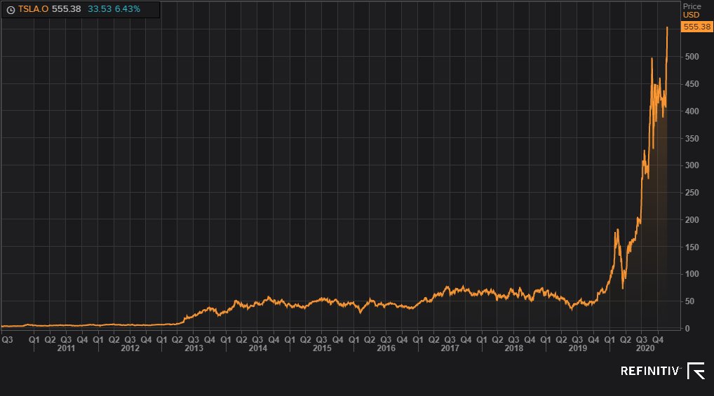 Ich würde die Aktie nur als Investment empfehlen, und davor warnen, wie volatil sie ist. Als vor einigen Monaten angekündigt wurde, dass Tesla noch nicht in den Index aufgenommen wird, ging es 21% an einem Tag nach unten. Wenige Monate davor um 50%. Das sollte man wissen und die Positionsgröße anpassen. Vom Traden der Aktie würde ich unbedingt und dringend abraten.