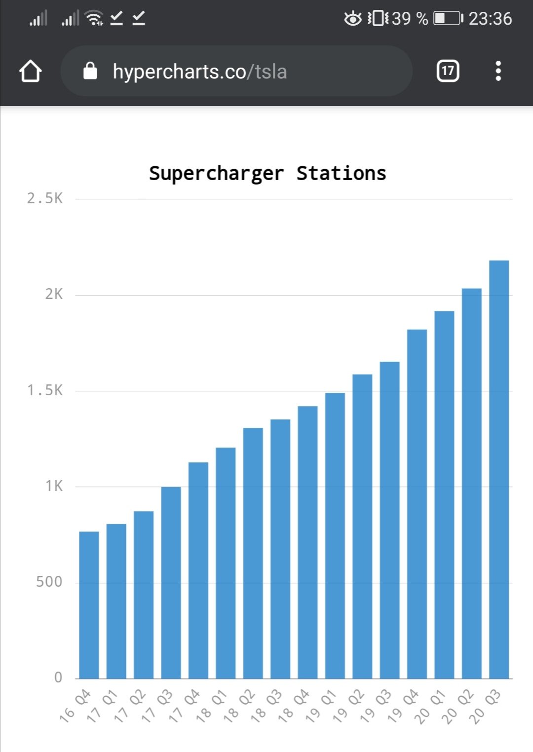 Michalski Dezember 1, 2020 · bearbeitet Dezember 1, 2020 von Michalski vor 3 Stunden von Holgerli: Andersrum wird ein Schuh draus: Hier hatte ich ja schon geschrieben, dass Tesla zw. Anfang 2020 und dem 8. November 5.000 neue Supercharger aufgestellt hat und Allein zwischen Ende September und 8. November wohl deutlich über 2.000. Schon mal dran gedacht, dass Tesla einfach des Tempo des Ausbaus erhöht, weil jetzt Kohle im Überfluss da ist und man schlicht eine 2. Fabrik braucht. Nicht schon wieder eine Diskussion um Supercharger. Die hast Du doch schon zweimal vergeigt. Laut supercharge.info hat Tesla 2.048 Supercharger Stationen mit 18.626 Stalls weltweit in Betrieb. 75 Stationen sind aktuell im Bau. Am 31.12.2019 waren es 1.751 Stationen - gegenüber heute ein Zuwachs von 17%. Am 31.12.2018 waren es 1.416 - ein Zuwachs von 24% vs. 2018. Plotte doch mal den Zuwachs der Supercharger mit der Steigerung der Auslieferungszahlen. Ich wette, sie bauen viel zu wenig Stationen für die steigende Flottengröße. Und wenn Du schon dabei bist, schau doch mal nach dem Anstieg der Anzahl der Fahrzeuge pro Service Center: Aber bestimmt ist das auch alles wieder Quatsch. Man hört ja gar keine Kritik über Teslas Service. Erinnert sich noch jemand an das Versprechen hier? Diesen Beitrag teilen Link zum Beitrag