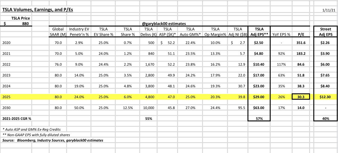 Teslas Marktkapitalisierung will ich überhaupt nicht verteidigen, aber etwas bullisher müssten die annahmen schon sein, um die Markkapitalisierung auf Verkaufszahlen hoch zu rechnen.