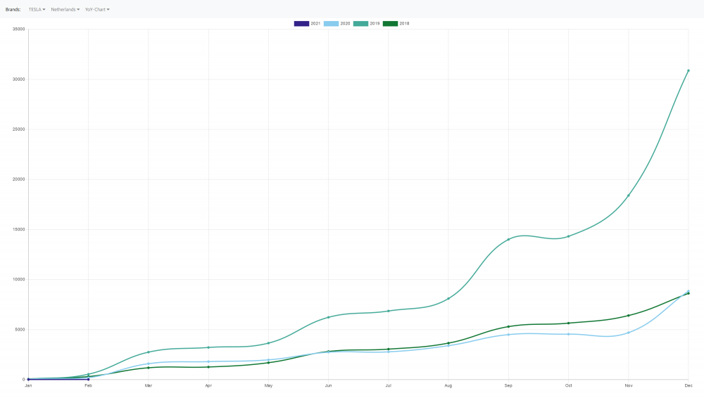 In den Niederlanden sanken 2020 Teslas Neuzulassungen "munter" um -71,3%.