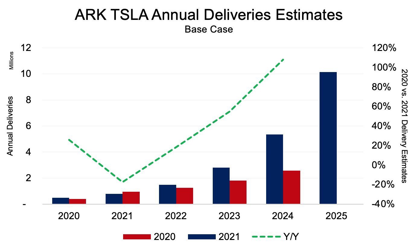 herbert_21 März 20, 2021 ARK Invest Kursziele für 2025 Base case: $3000 Bear case: $1500 Bull case: $4000 Nachfrage auf Twitter, Base case ohne Robotaxi: $1900 Man kann ihr Modell auf Github herunterladen und die Annahmen verändern. @Michalski Mindestens zwei Fabriken können ihre Kapazität verdoppeln, in Shanghai wird bereits daran gearbeitet. Austin hat gigantische Ausmaße. Diesen Beitrag teilen Link zum Beitrag