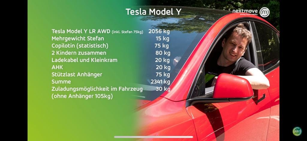 Model y hat eine erlaubte Zusatzleistungen von 315kg