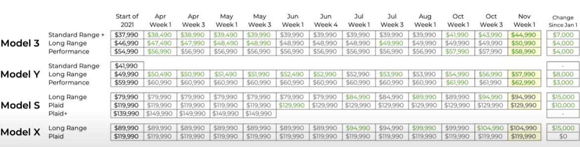 herbert_21 November 10, 2021 · bearbeitet November 10, 2021 von herbert_21 Am 8.11.2021 um 18:47 von herbert_21: Man muss die Nachfrage in der Zwischenzeit aus China befriedigen, und zwar mit akzeptablen Wartezeiten. Der zweite Teil deiner Frage ist bereits beantwortet. 652k Run Rate im Oktober. 7 Tage zu, ein Tag ist der Oktober länger. Das sind gewaltige Zahlen. Wieso? Schau Mal in den letzten Quartalszahlen im PDF was Tesla dort als Kapazität für Shanghai angegeben hat. Vergleich mit Juli (also dem ersten Monat im Vorquartal) und YoY. Und Shanghai liefert nicht nur nach EU, sondern nach Hongkong, Australien, Israel usw. (...) Hat Tesla Sandbagging bei den China Nummern betrieben? Aber mal langsam. Das hier ist wenige Wochen alt: Q3 Earnings Shareholder Deck Seite 7, dritte Zeile im Bild " Shangai Was heißt da ">450.000"? Sind ">450k" vermutlich bald 600k run rate, aber wir wollen es nicht verraten? 652k in einem Monat, der zwar um einen Tag länger ist, die Fabrik aber wg. chin. Neujahr 7 Tage zu ist? 700k im nächsten Monat? Völlig unabhängig davon, was soll die Aussage ">450k" geht's genauer, und wenn nein, warum nicht? Das ist ungefähr so konservativ wie "wie geben eh eine Guidance aber sagen "50%". Kriegsführung nach Sun Zu wie Munro meint? Dann wären wir bei 300-320k im Q4. Das ergibt dann 920k in 2021 und wäre deutlich über den Erwartungen. Die YoY Steigerung in Shangai von Q4 2020->2021 wären dann 180%. "In den Worten von Rob Maurer: Tesla is showing the capability ... of a 1,2mn vehicle run rate" -> also wenn man die 300k des Q4 hochrechnet, kommt man auf diese Run Rate. Im Detail wie folgt aufgegliedert: Völlig unabhängig davon, was soll die Aussage >450k? Daher 2 Thesen: These 1: Tesla wird in Q4 2021 die Erwartungen bei den Auslieferungen und Produktion schlagen: ~300k These 2: Die Automotive Gross Margin wird wieder über 30% liegen These 2 habe ich ja schon untermauert. China: Jedes zusätzlich verkaufte Model Y ist weit über 30% GM, man produziert es günstiger als das Model 3. Ich habe was von 37k COGS gelesen. US: Verkaufspreise erhöht - wird sich ebenfalls positiv auswirken und belegt Nachfrage / Preissetzungsmacht Die letzte Erhöhung bedeutet, dass das Model 3 SR+ jetzt 7k teurer ist, und das billigste Model Y LR 8k teurer. Kann man machen, wenn die Nachfrage da ist! Warum habe ich also nachgekauft? Because the fundamentals are strong! Diesen Beitrag teilen Link zum Beitrag