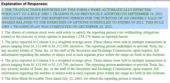 herbert_21 Dezember 29, 2021 Elon Musk hat seine Verkäufe abgeschlossen. Das geht aus dem letzten sogenannten 10b5-1 Formular hervor. Diesen Beitrag teilen Link zum Beitrag